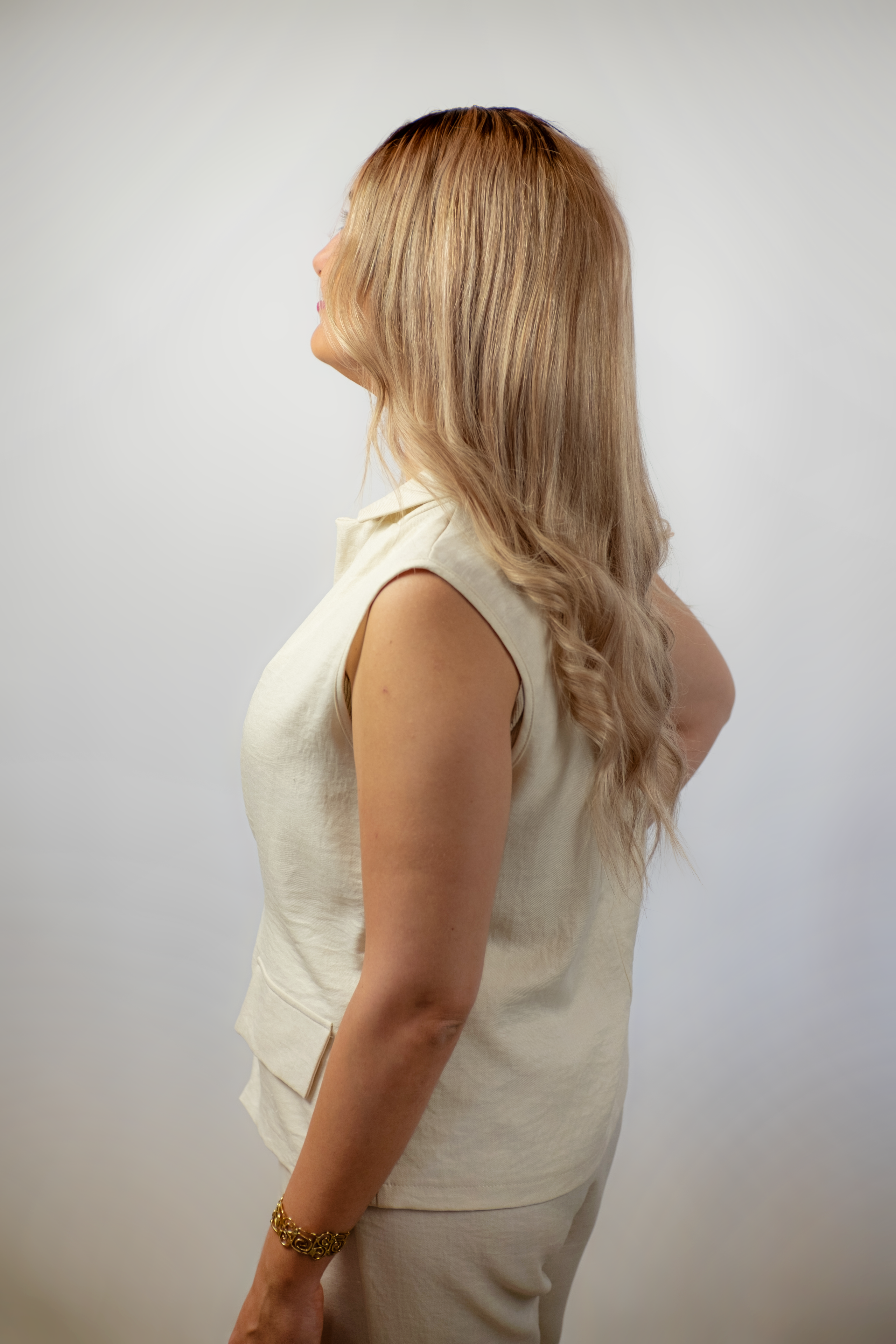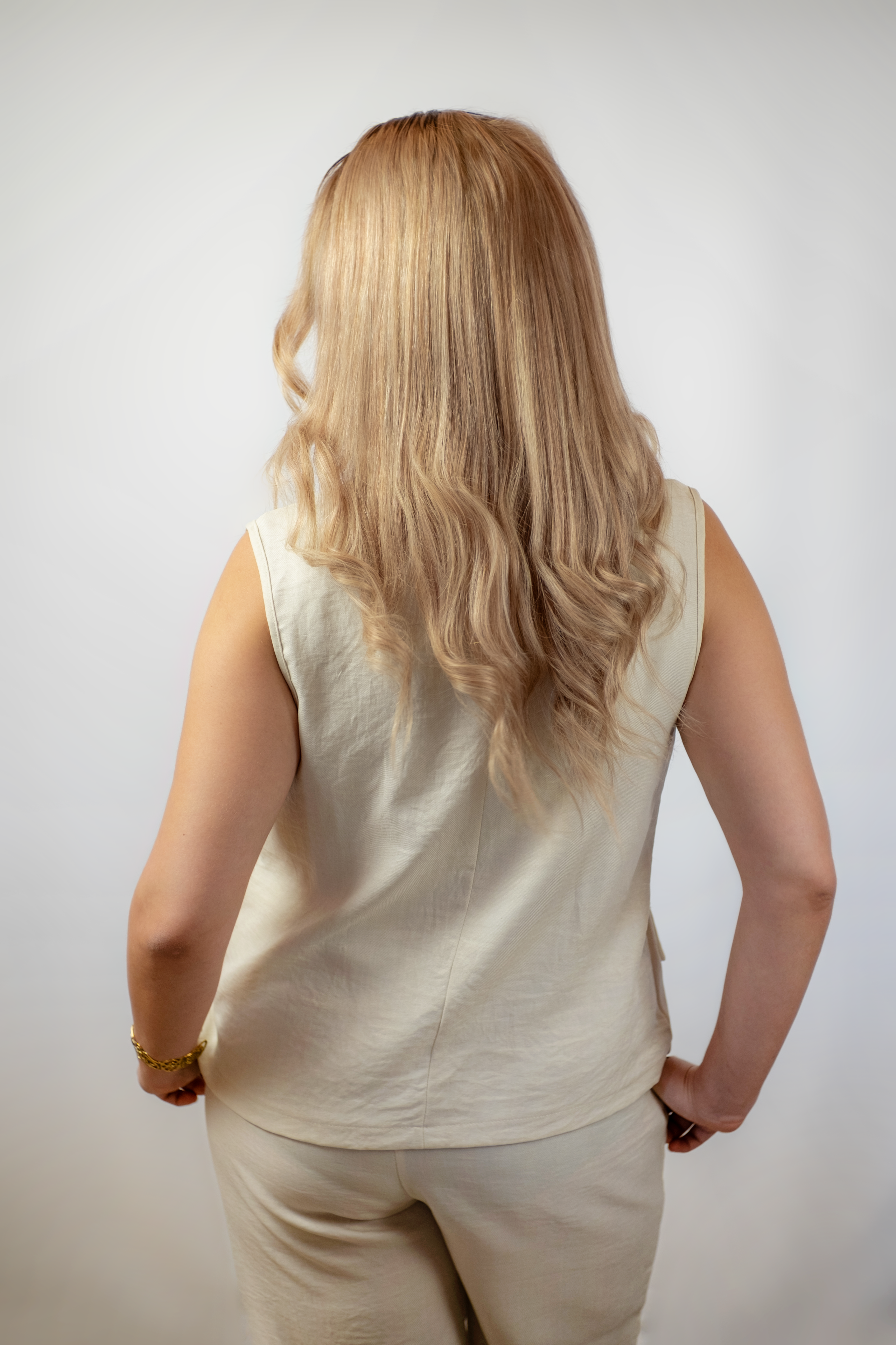 Nuestras pelucas están elaboradas con pelo 100 % natural vietnamita, suave, brillante y sin enredos, trabajado con el mínimo de productos para conservar su belleza y movimiento natural.
